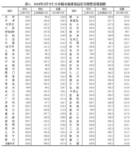 國家統(tǒng)計局今日發(fā)布了3月份70大中城市新建商品住宅銷售價格。