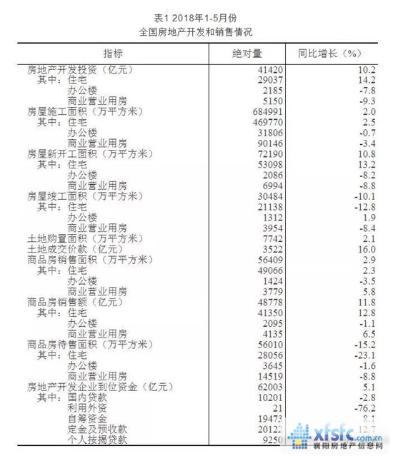 近期,國家統(tǒng)計局發(fā)布了2018年1-5月,全國房地產(chǎn)市場的權(quán)威數(shù)據(jù)。