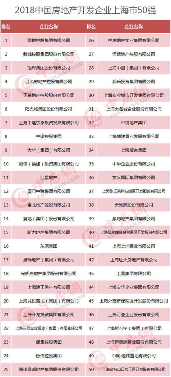 附表:2018中國房地產(chǎn)開發(fā)企業(yè)華東華中區(qū)域測評榜單