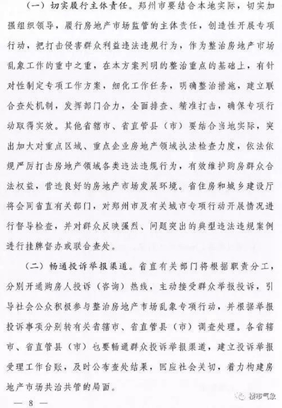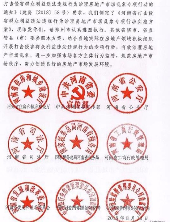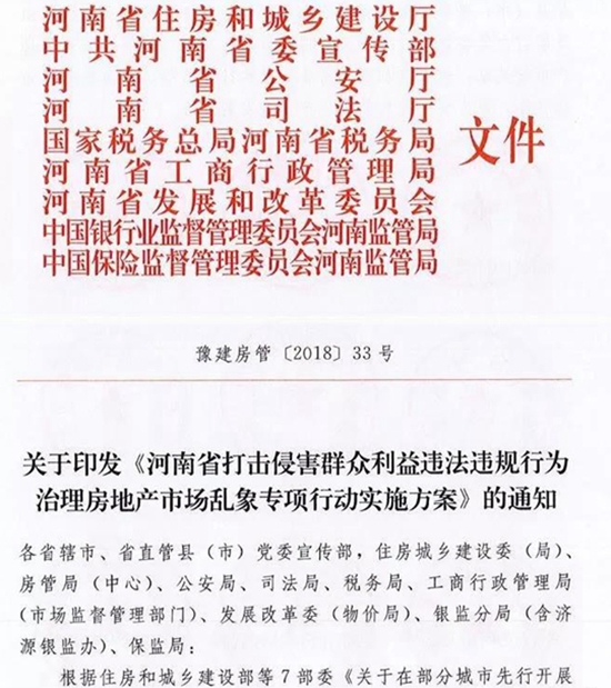 今天(8月21日),河南省住建廳、省委宣傳部、省公安廳、省司法局、國家稅務總局河南省稅務廳、省工商行政管理局、省發(fā)展和改革委員會、中國銀行業(yè)監(jiān)督管理委員會河南監(jiān)管局、中國保險監(jiān)督管理委員會河南監(jiān)管局9部門,聯(lián)合發(fā)文《河南省打擊侵害群眾利益違法違規(guī)行為治理房地產(chǎn)亂象專項行動實施方案》的通知,打擊投機炒房行為和房地產(chǎn)“黑中介”,治理房地產(chǎn)開發(fā)企業(yè)違法違規(guī)行為和虛假房地產(chǎn)廣告,進一步整頓和規(guī)范房地產(chǎn)市場秩序,健全房地產(chǎn)市場監(jiān)管機制,切實維護人民群眾合法權(quán)益,推動河南省房地產(chǎn)市場平穩(wěn)健康發(fā)展。